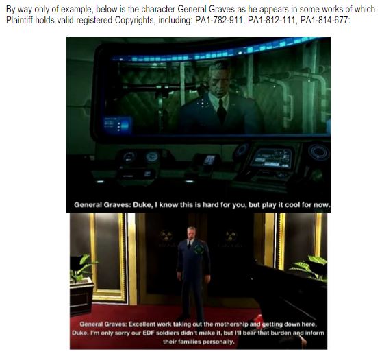 The lawsuit was filed over a year ago after 3D Realms and Interceptor began teasing a new Duke Nukem game, which Gearbox aimed to stop by claiming that their work unlawfully infringed on material it held the rights to (examples pulled from court documents are embedded below.)